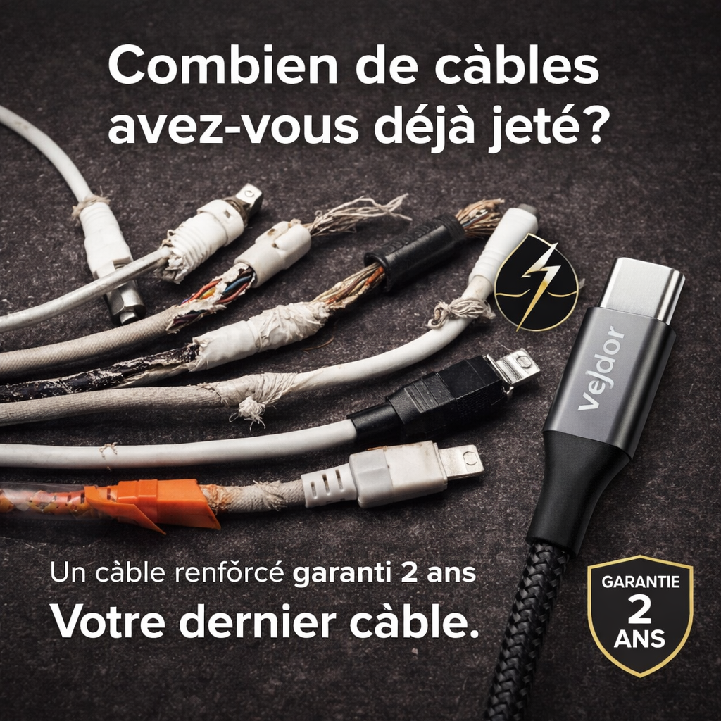 La différence Veldor, c’est enfin un câble qui ne vous lâche pas au bout de 2 mois et qui s'adapte à votre utilisation
