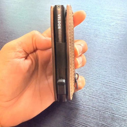 Ce portefeuille est fabriqué en alliage d'aluminium de haute qualité et en cuir synthétique premium, garantissant durabilité et élégance. Son design renforcé assure une résistance accrue à l'usure quotidienne.